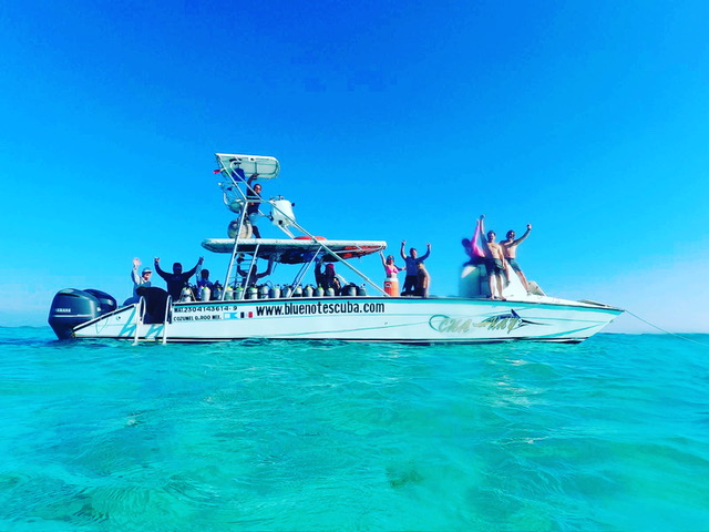 “We have 1 goal in mind and that is to be different than all the other dive shops in Cozumel. As a boutique dive operation we aim to create personalized adventures that are safe, fun and exciting. Experience Scuba Diving Cozumel on our fast and comfortable dive boat will have you spending more time on the reefs exploring. For certified divers we offer 2 tank morning dives, afternoon dives, twilight and night diving in Cozumel. Ask about our adventure dives to the far North for advanced divers. Blue Note Scuba is a PADI 5 Star Resort Cozumel training center. Dive classes range from Discover Scuba, Open Water Diver, Advanced and up to Divemaster. All around the Best Dive Shop in Cozumel. All morning trips include a full lunch. Lets go dive!!”