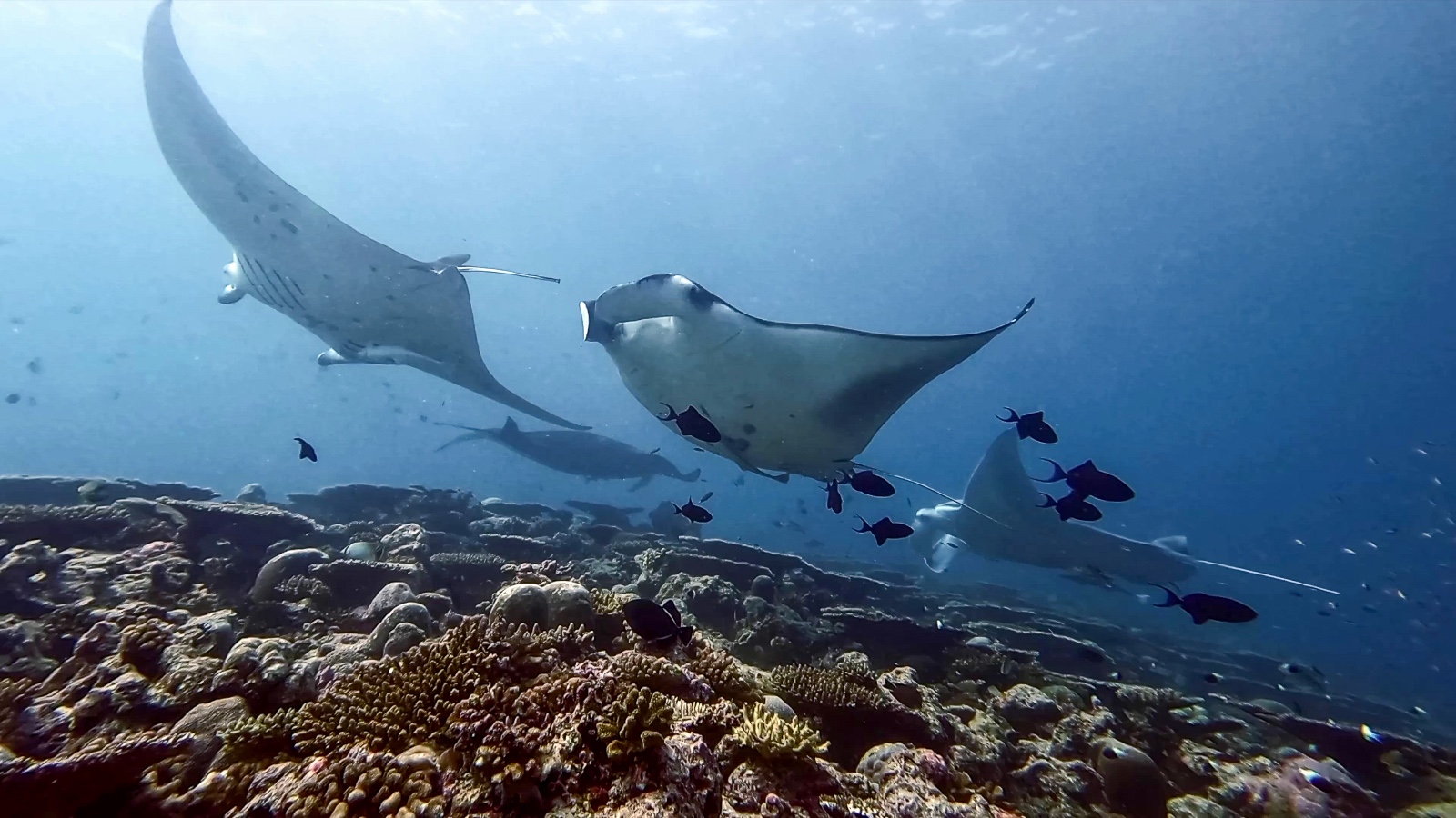 Boutique Beach is located on Dhigurah which is in the famous whale shark area in the south Ari Atoll. The British Whale Shark conservation group, who are also based on Dhigurah, have recorded 645 whale sharks in our area, of which only 8 are female. Average length is 5.92m which makes them “teenagers”. The whale sharks are there all year around, but some weather conditions makes them harder to spot. Mantas regularly feed in our lagoon as well as the famous cleaning station at Rangali which within easy reach.