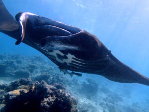 One of the many highlights around the Great Astrolabe Reef is a manta ray cleaning station. Only 3 minutes aways by boat from the Dive Centre. The graceful gentle giants gather at Vuro Island every day from May until the end of November. You can enjoy a very peaceful and almost private encounter with the manta since we are generally the only boat onsite.