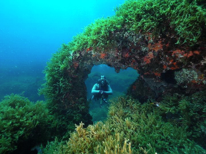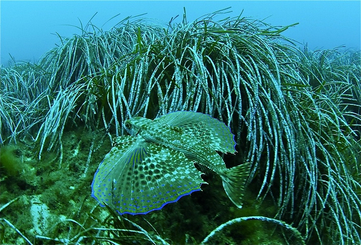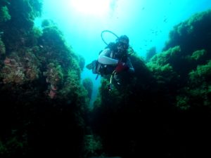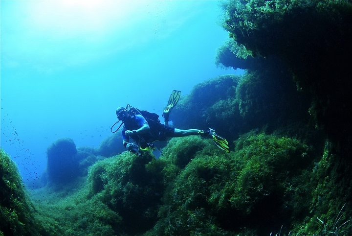 Fortizza Reef is an amazing dive for all levels of scuba diving experience. This site has over a hundred different mapped out gorgeous features and probably more. It is including caves, long & short tunnels, swim through’s, over hangs, canyons, walls. crevices and a million nooks and crannies where small fish and a diverse marine life hide and play during the day & night. The area is abundant in lushes healthy Posedonia Oceanica. It has as well many boulders which offer a very interesting a contrasting bottom topography. For all those who enjoy photography this is a site for Macro lovers as the area rarely boasts large fish. Although occasionally we see Baracudas, Jacks and Rays. The smaller marine life thrives here from minute Bobtail Squids to a huge number of different Corals. We also see Nudibranchs, Tube Worms, Crustaceans and more. On almost every dive one can see large schools of Salemas, Sea Breams, Scorpion Fish, Mullets, Damsels, Wrasses and Painted Combers curiously following Octopus and Moray Eels around this extensive reef which we luckily call our house reef.