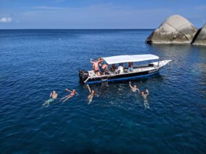 But the adventure doesn’t stop there! Test your strength and enjoy stunning views while rock climbing on Koh Tao’s rugged cliffs. Or, explore the coastline at your own pace with one of our stand-up paddleboards (SUPs) available for rent. For those who want to experience the island from a different angle, we also offer private boat charters, perfect for a day of exploration, snorkeling, or just relaxing on the water.