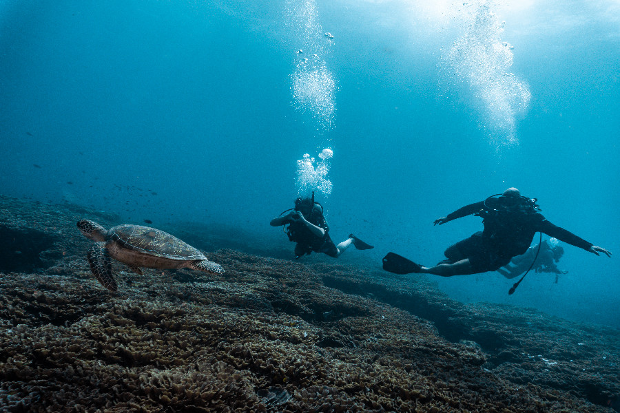 Beyond turtles, the site features a diverse marine ecosystem with colorful reef fish, soft corals, and occasional reef creatures like moray eels and small rays. Visibility is typically very good, and currents are usually mild, creating a relaxed and accessible underwater experience.